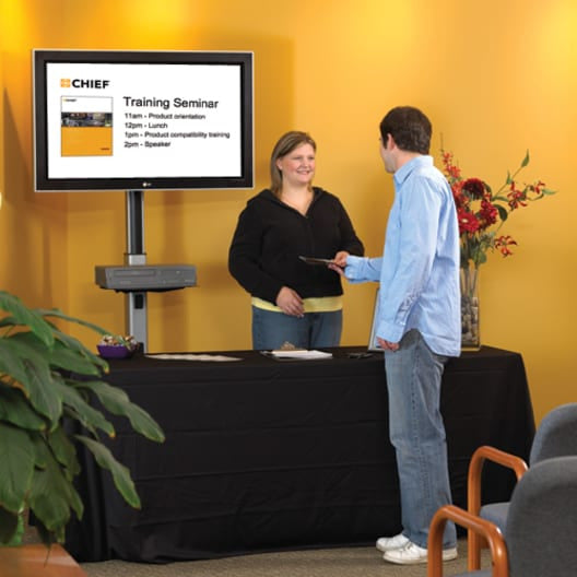 A solid, low-profile solution for mounting a flat panel on a floor AV stand.