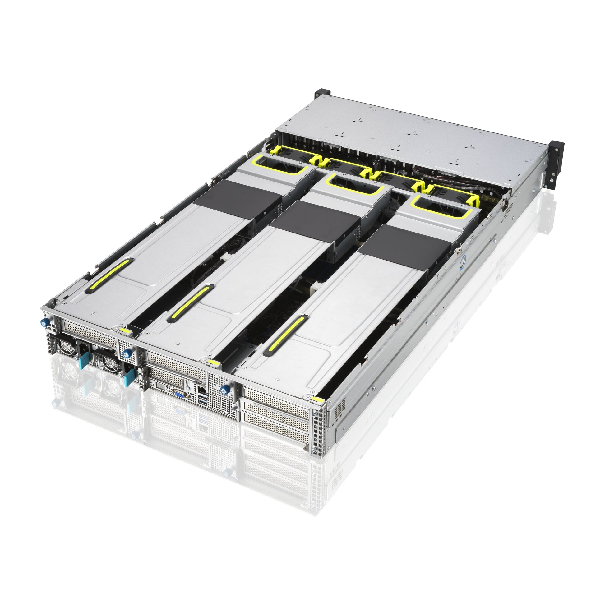 ASUS RS720A-E11 servers feature a powerful GPU architecture that supports up to four dual-slot GPUs such as NVIDIA A100 in one 2U system to enable easy scale-up in order to meet the demands of AI and high-performance computing (HPC), and to securely run workloads in virtualized environments.