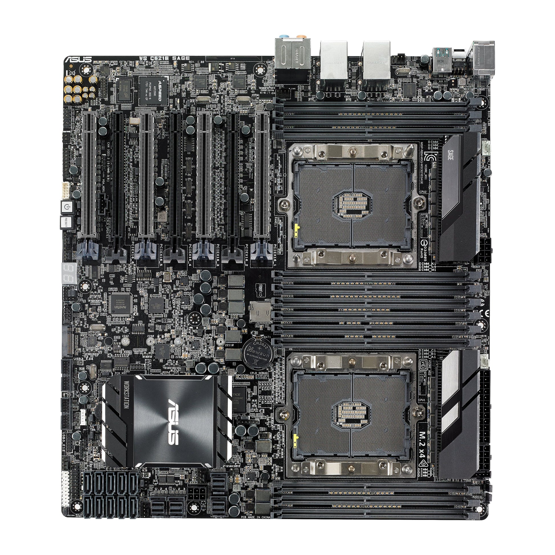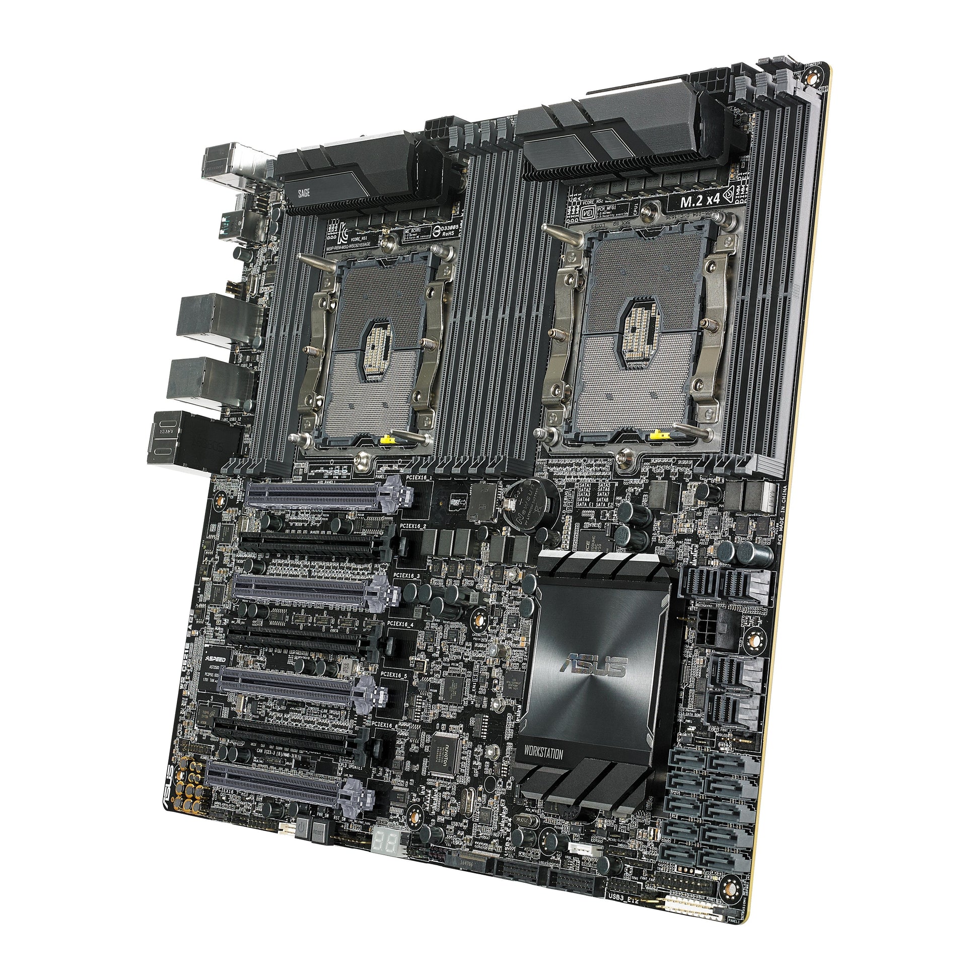 ASUS WS C621E SAGE accommodates up to four dual-width graphic cards with a four true PCIe Gen3 x16 link to unleash maximum graphic performance. With support for up to 4-way NVIDIA SLI, AMD CrossFireX, and 2-Way NVIDIA Quadro SLI, WS C621E SAGE is an excellent choice for content creators, mechanical or architectural engineers, and anyone with processing-intensive workloads.