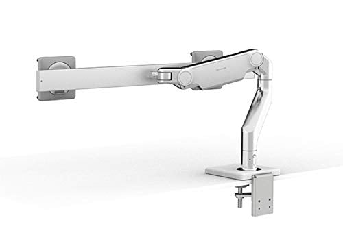 Humanscale M8.1 Adjustable Dual Monitor Arm with Crossbar - Two Piece Clamp Mount - Polished Aluminum M81CMWB2B In today’s fast-paced, agile work environment, there’s no time for discomfort. M8.1, part of Humanscale’s revolutionary new monitor arm line, instantly improves the comfort, health and productivity of any workspace. Fully compatible with traditional desks and sit/stand workstations alike, M8.1 meets a variety of configuration needs for single monitors from 6 to 28 pounds or – with an optional crossbar support – dual monitors up to 12 pounds each. Featuring innovations like Humanscale’s patented Weight-Compensating Spring Technology and Smart Stop functionality, M8.1 enables the personalization and flexibility needed for today’s evolving workplaces. M8.1 supports a better working posture, creates more usable desktop space and helps maintain a clutter-free environment. It offers quick, simple installation and industry-leading flexibility thanks to Quick Release joints that instantly snap together for a secure and robust fit.