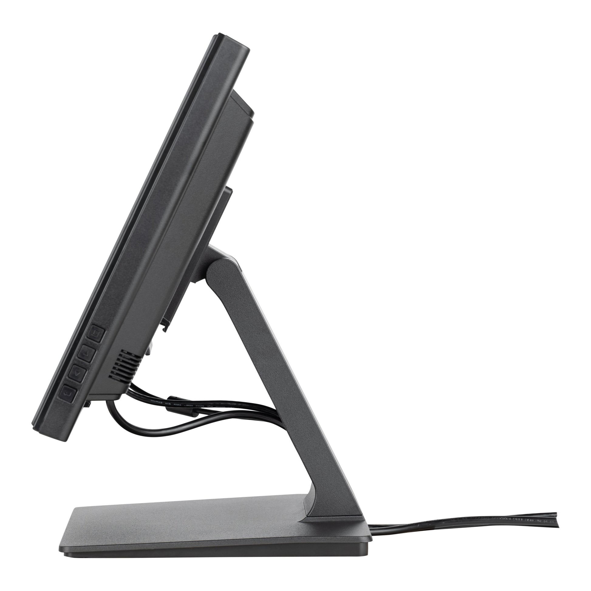 The T1732MSC-B1S 17" multi-touch screen is based on projected capacitive technology which thanks to a glass overlay covering the screen guarantees high durability, scratch-resistance and perfect picture performance. The touch function remains unaffected even if the glass is scratched. The flexible stand can be positioned at several angels creating a comfortable and ergonomic user experience and the integrated cable management system hides all the cables and electrical wires giving a neat and cable-free workspace. Menu buttons are located on the side of the screen which can be locked to prevent tampering and includes a handy function to deactivate the touchscreen for cleaning. In addition the edge-to-edge glass design creates an eye-catching finish with high light transmission guaranteeing perfect picture clarity and brilliant colours.