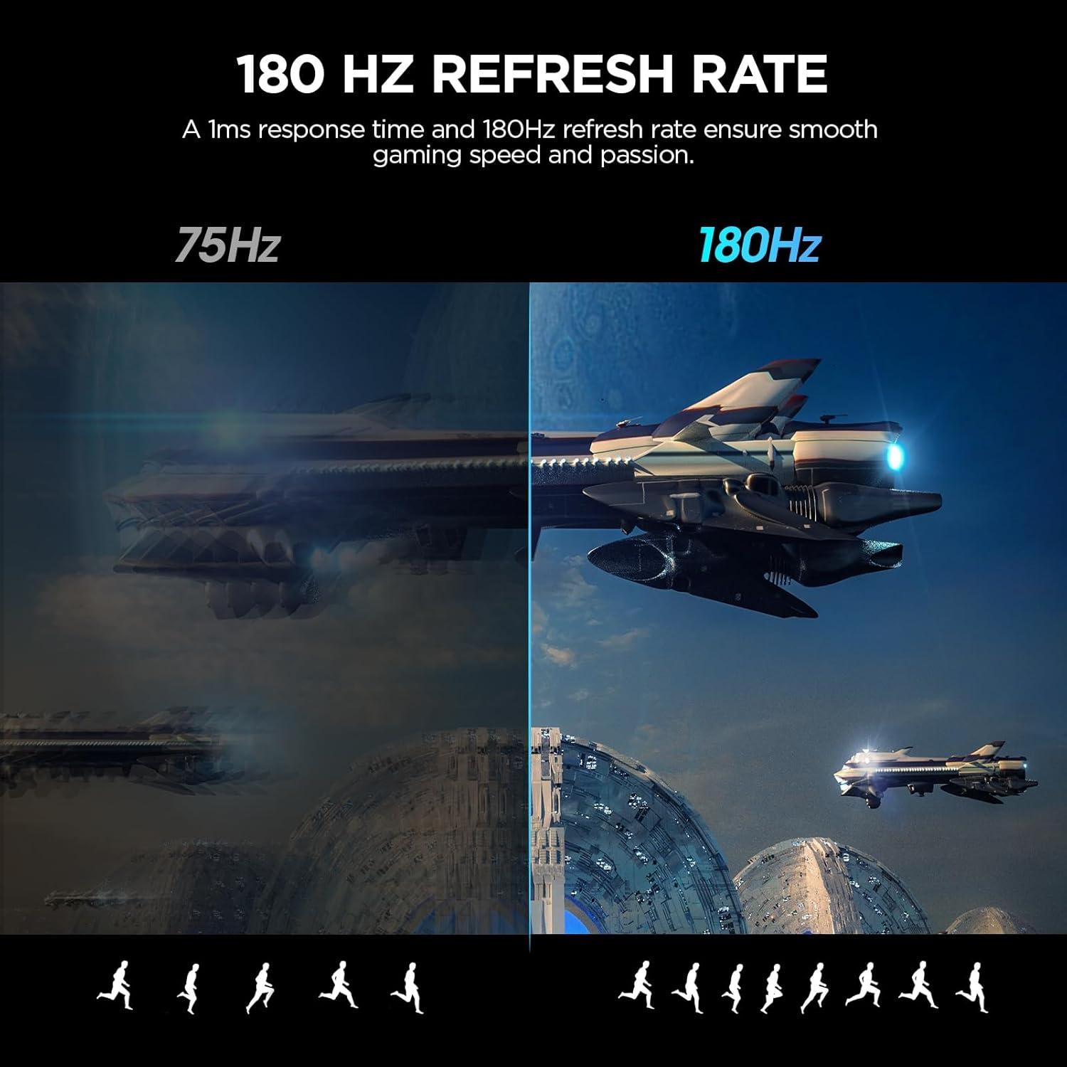 With a blazing-fast 180Hz refresh rate, the KOORUI 27E6CA ensures seamless motion for smooth gameplay and an edge in eSports. AdaptiveSync technology eliminates screen tearing, stuttering, and input lag, providing a flawless gaming experience free of ghosting or glitches. Whether you're conquering your favorite game or enjoying cinematic content, this monitor guarantees pure, realistic picture quality.