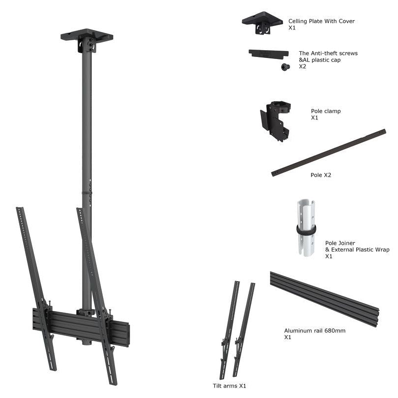Multibrackets Pro Series Public Ceiling Mounts is ideal for any large screen digital signage ceiling application.