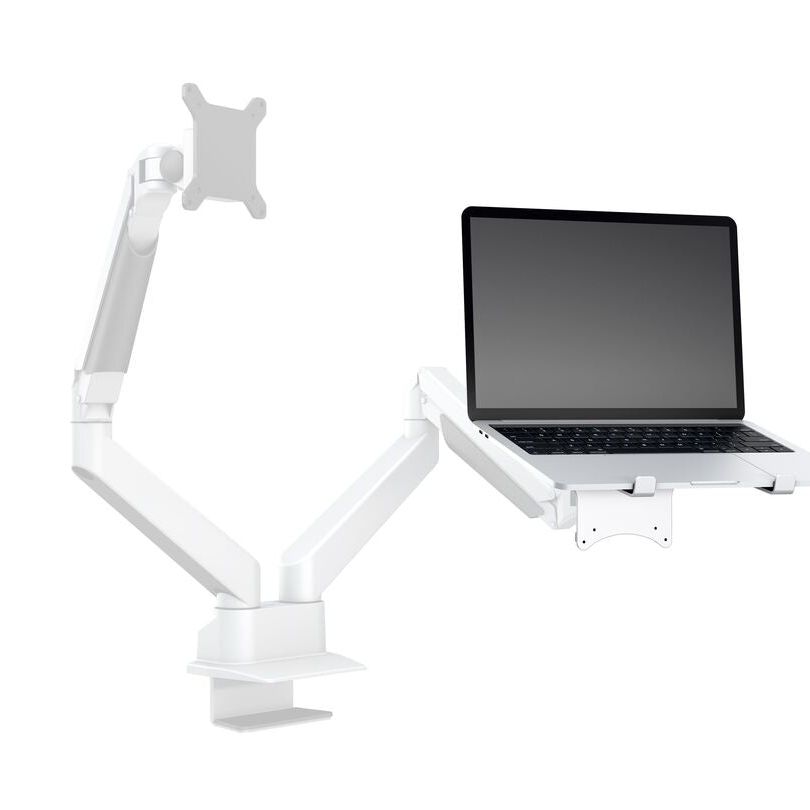 This unique holder consists of a VESA based centerpiece and its connected holding arms that gently grab your laptop. The M Laptop Holder Gas Lift Arm is VESA compatible, so it can be mounted onto almost any VESA specified wallmount, arm or desktopmount. However this laptop holder is designed to work with M VESA Gas Lift Arm.