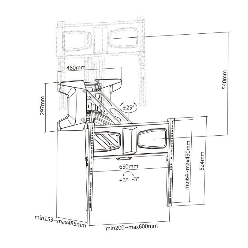 Do you want to position your TV high or low depending on situation. Get a always comfortable eye-level view. This motorized assisted mount lets you effortlessly pull the display forward and down to a comfortable viewing position, where you can turn it left or right for any angle. When not used the display can be moved up the mount returns the display to its its original position flat above.