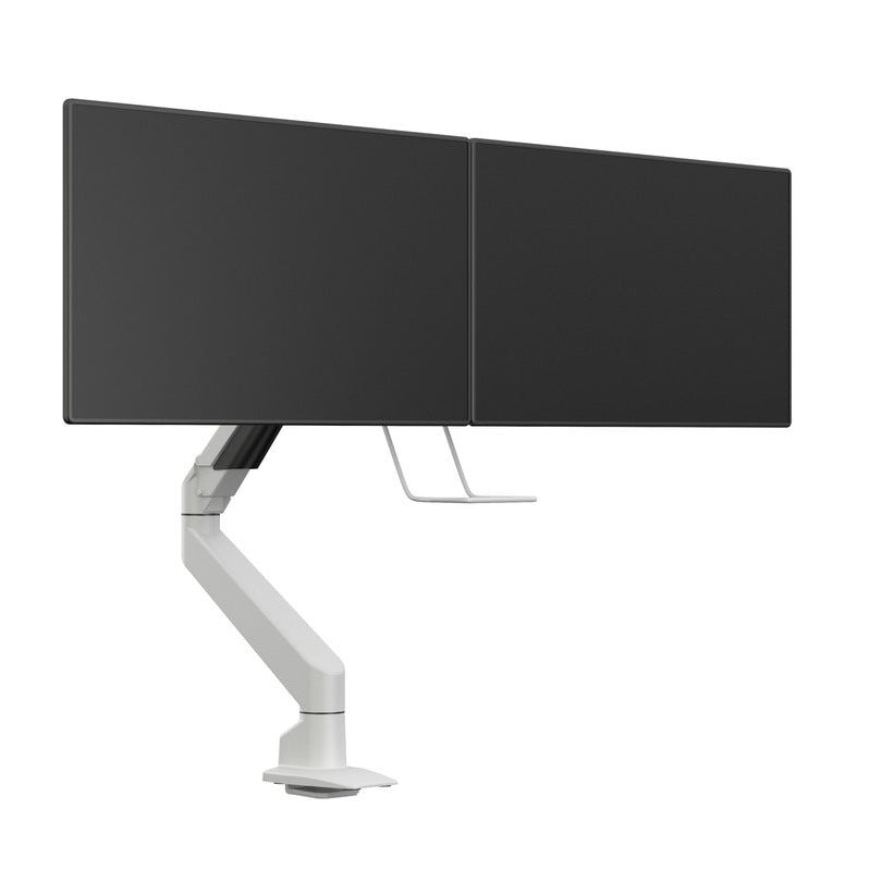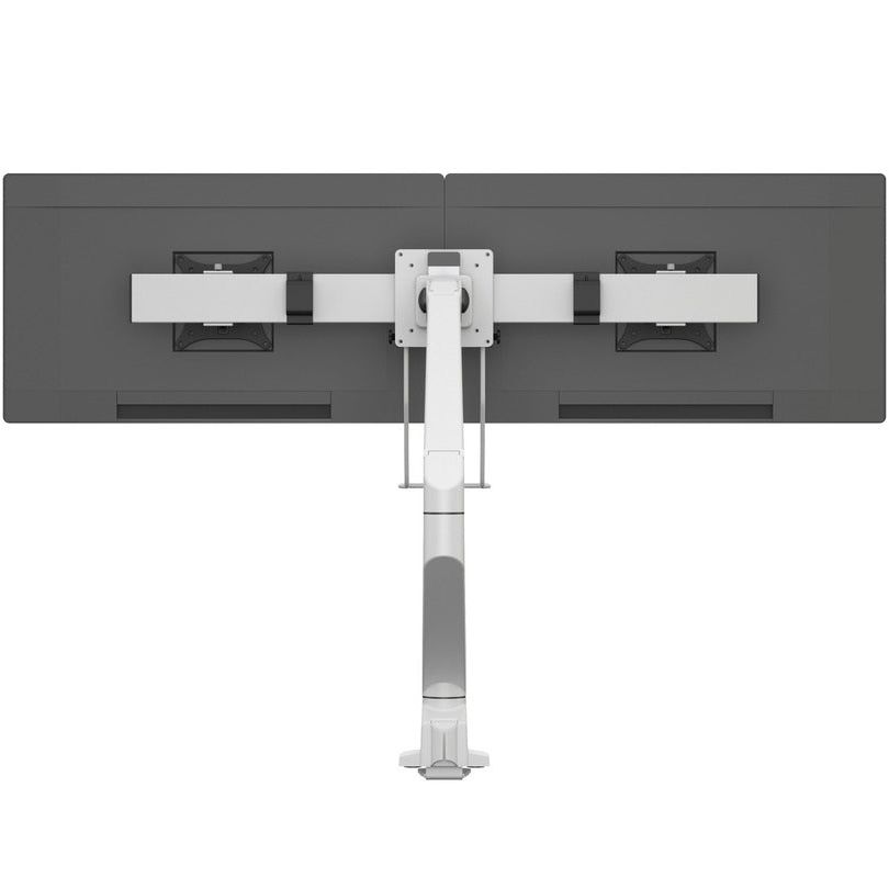 Multibrackets clean designed dual hinge bow works makes your gaslift work with two screens up to 28" monitors. A handle for simple dual positioning of your screens is mounted on the bottom part of the bow._x000D_