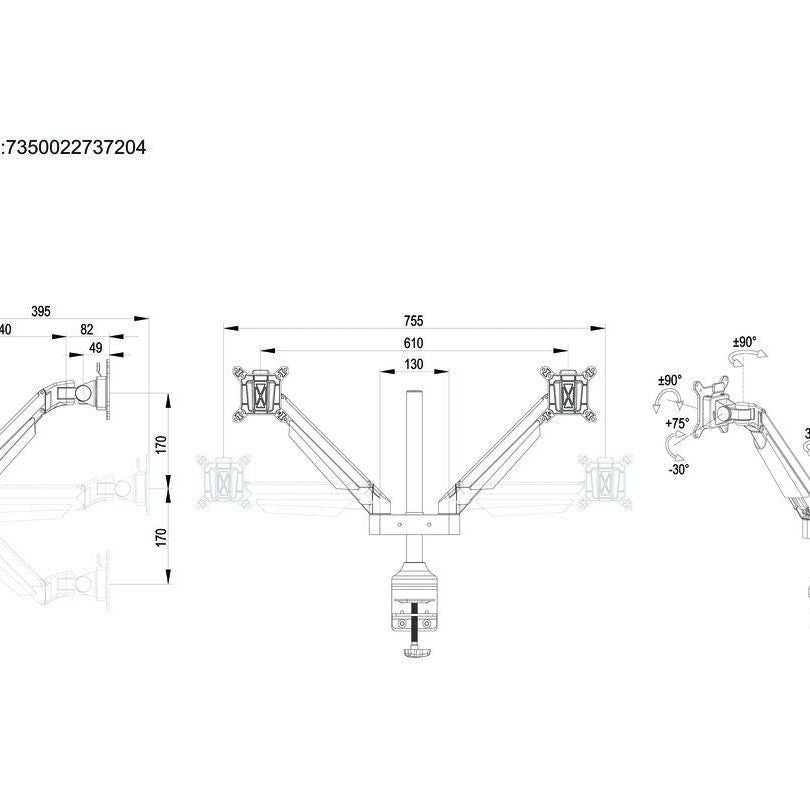 The M Vesa Gas Lift Arm Dual holds to your standard workdesk (max 50mm), or assemble it using a workdesk thru hole technique.