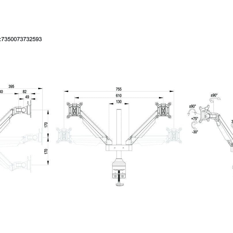 The Dual triple jointed gas suspended monitorarm was designed by Multibrackets to optimize your productivity and help reducing strain on neck, back and eyes.