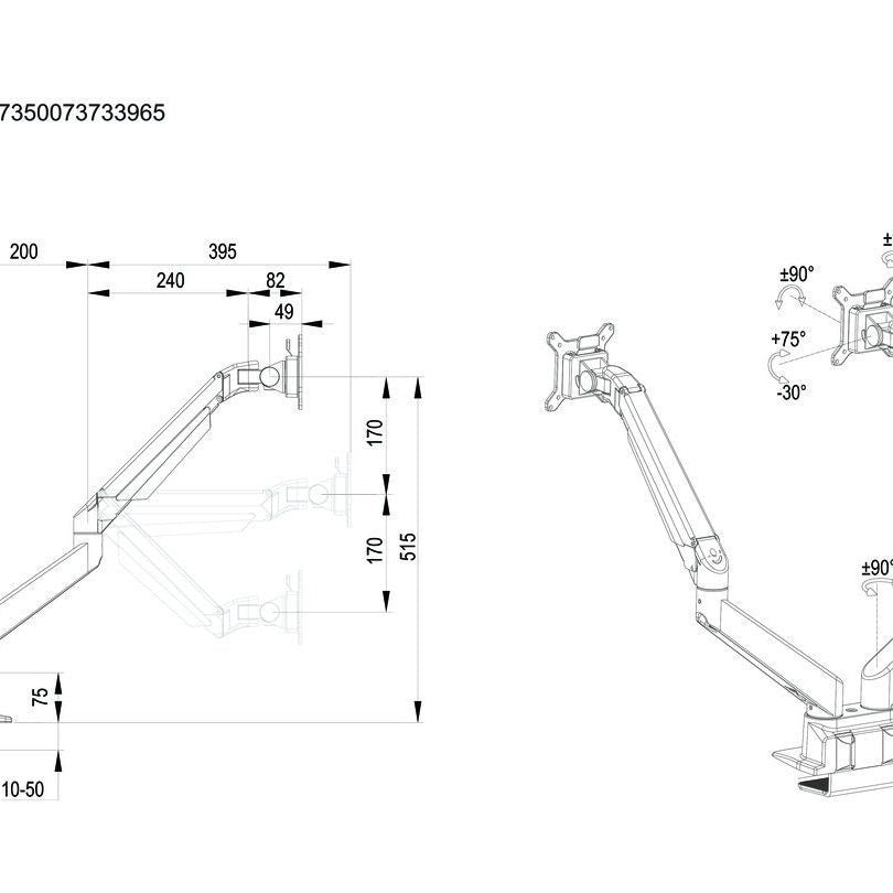 The M Gas Lift Dual Side by Side is made out of a durable aluminum construction and driven by true gas suspension technique. This makes the screens "float" and they can be moved with near zero effort. Sleek and streamlined, the M Vesa Gas Lift Arm frees up space and allows positioning of your displays for greater productivity. Fingertip tilt provides smooth adjustment for two LCDs in any direction. Easy move the screen from landscape to portrait position or move the screens close to the desk, high up, matching almost any wanted working position imaginable.
